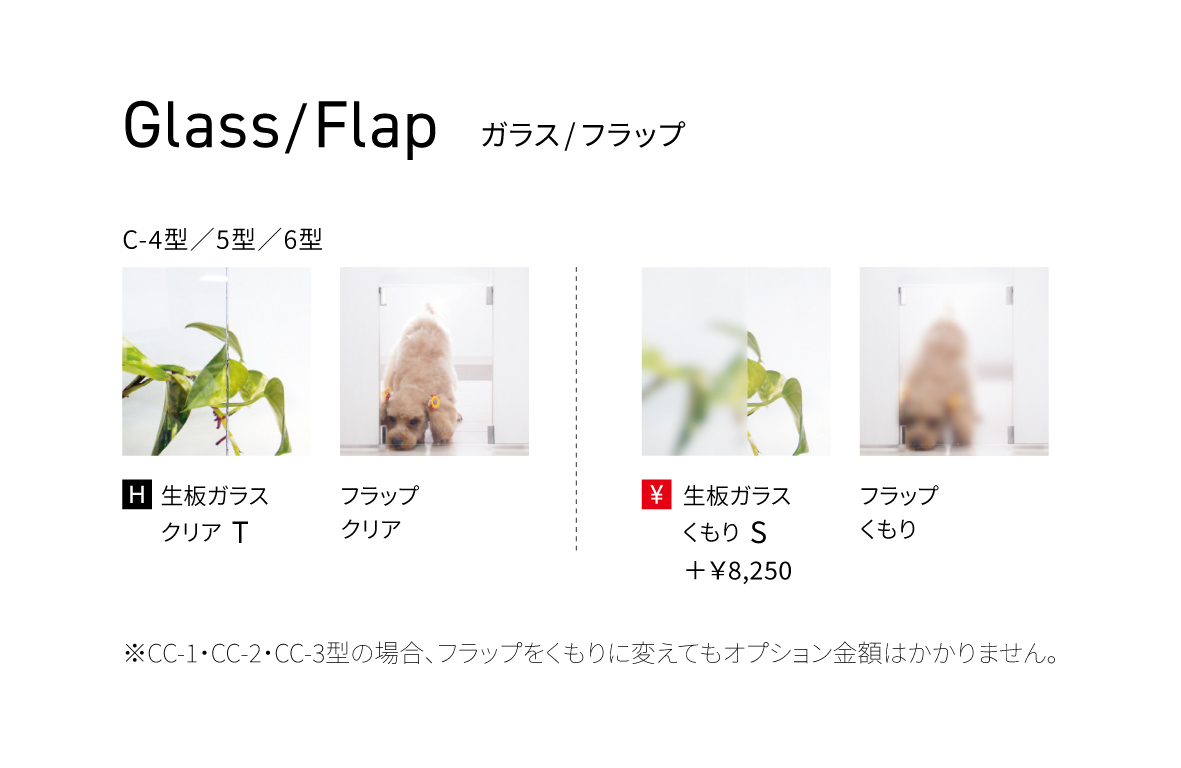 ペットドアのガラス・フラップの種類をお選び下さい