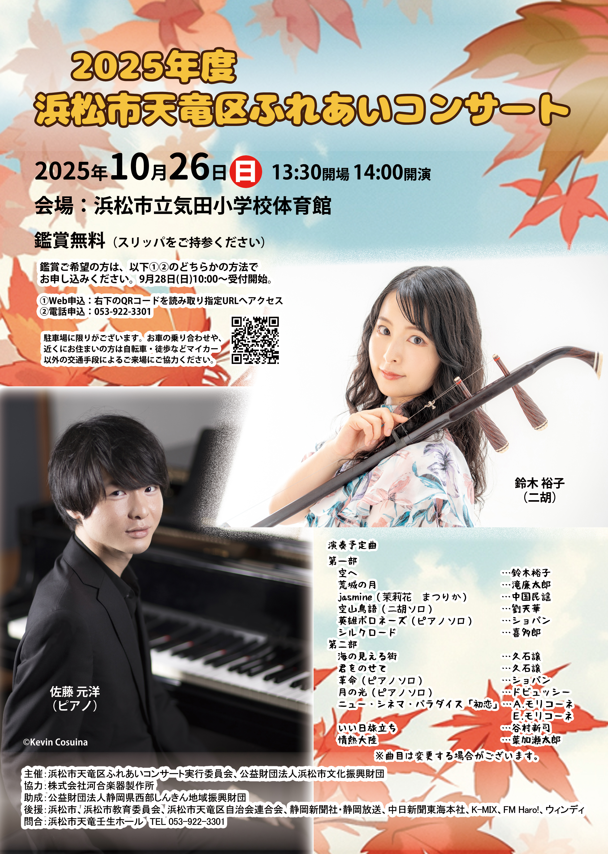 【鑑賞申込】10/26浜松市天竜区ふれあいコンサート