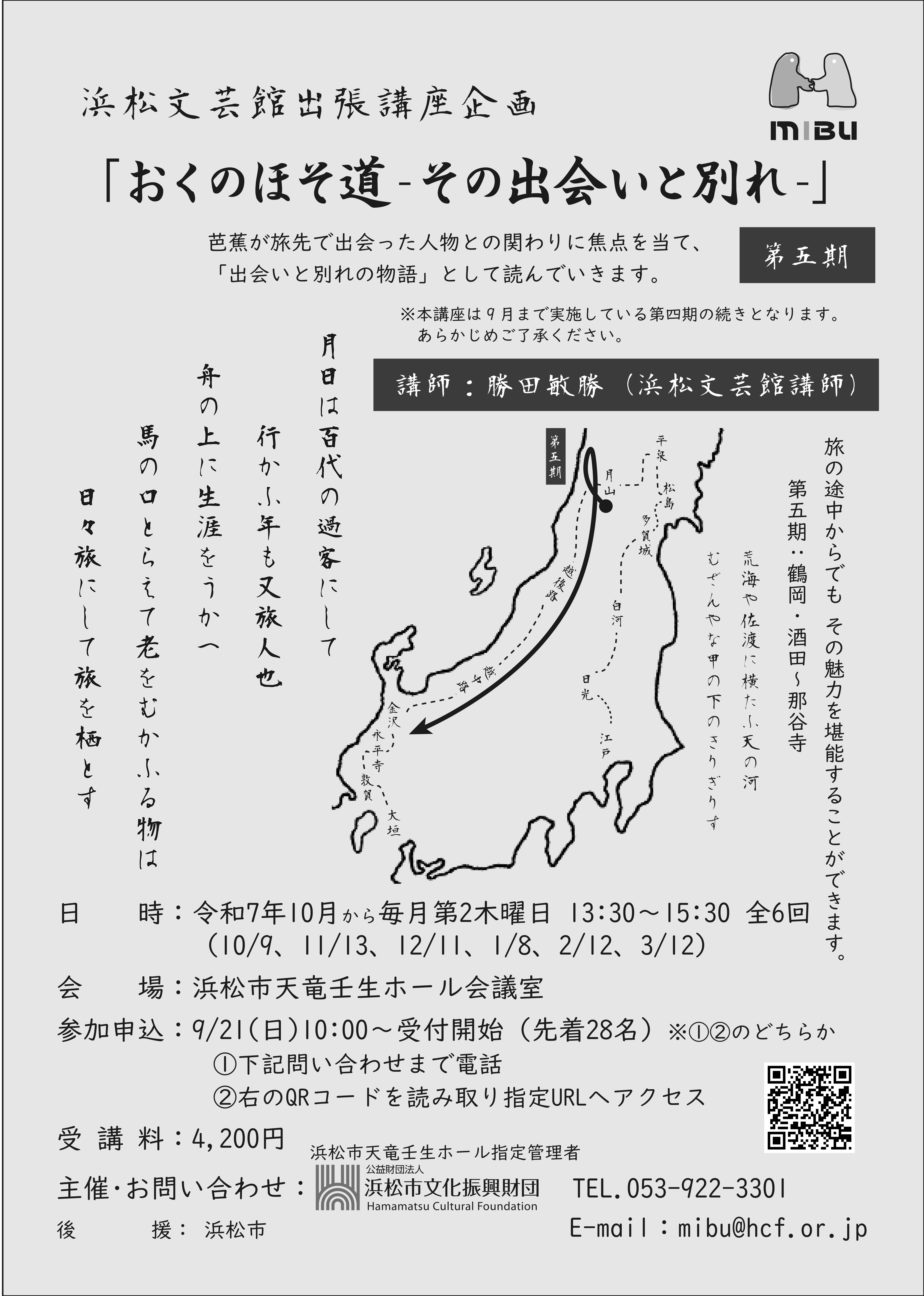【参加申込】浜松文芸館出張講座「おくのほそ道~その出会いと別れ~」第五期