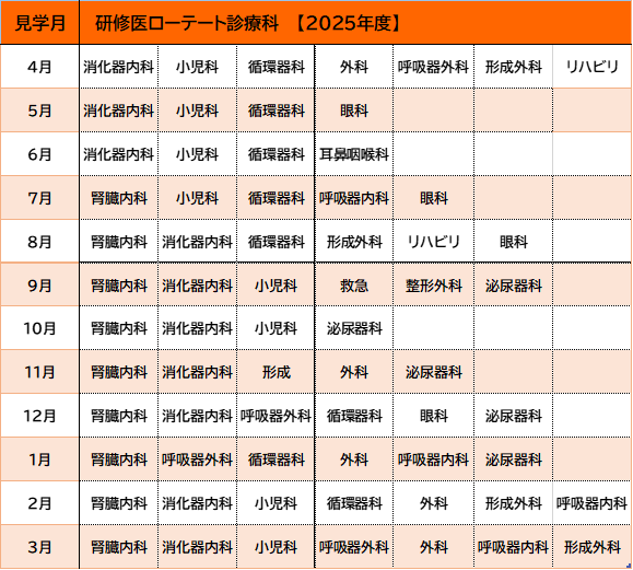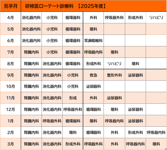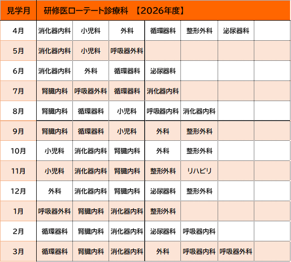 ※研修医ローテート診療科に記載されていない診療科をご希望の場合は、 診療科に確認をいたしますのでお申し出ください。