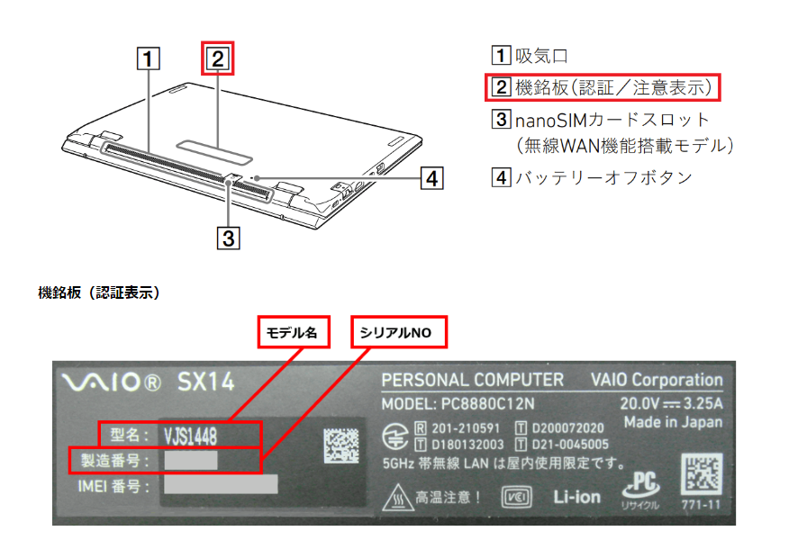 ご購入いただいた製品の機種名がわからない場合は、機銘板(本体底面)をご確認ください