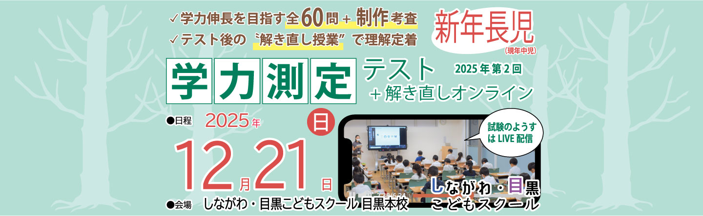 ・新年長児対象 第2回学力測定テスト 12月21日(日) 目黒校開催