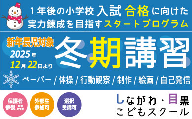 しながわ・目黒こどもスクールでは、私立小学校・国立小学校合格に向け、新年長児(現年中児)を対象に冬休み期間の実力伸長を目指す冬期講習2026を実施いたします。